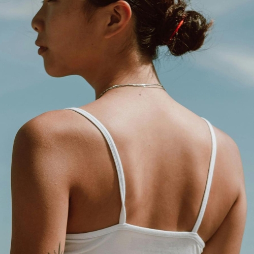 Zonlicht is fijn, maar het is belangrijk om elke huid, en zeker die met onzuiverheden, te beschermen tegen overmatige UVA- en UVB-straling. Zonlicht kan de huid uitdrogen en hierdoor ontstaat een soort ‘rebound-effect’; na de uitdroging gaan de talgklieren ineens heel veel talg produceren. Het gevolg: puistjes. Smeer minimaal met factor 30, check de ingrediëntenlijst en gebruik een crème (geen spray).